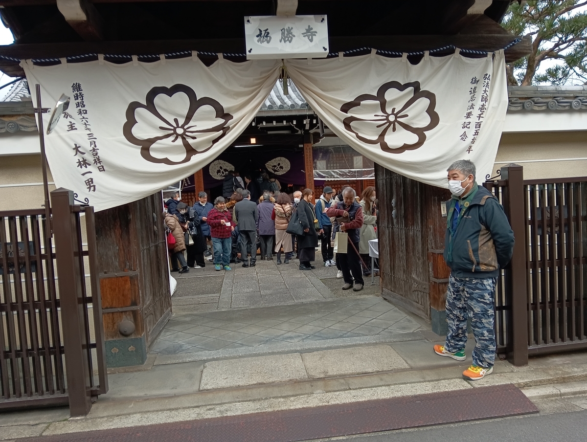 撮影した映像は此れ一枚切りで、門を潜る前にスマホを手にして撮影を仕様と構えると、門の脇に若い僧とお寺関係者に出迎えられました。