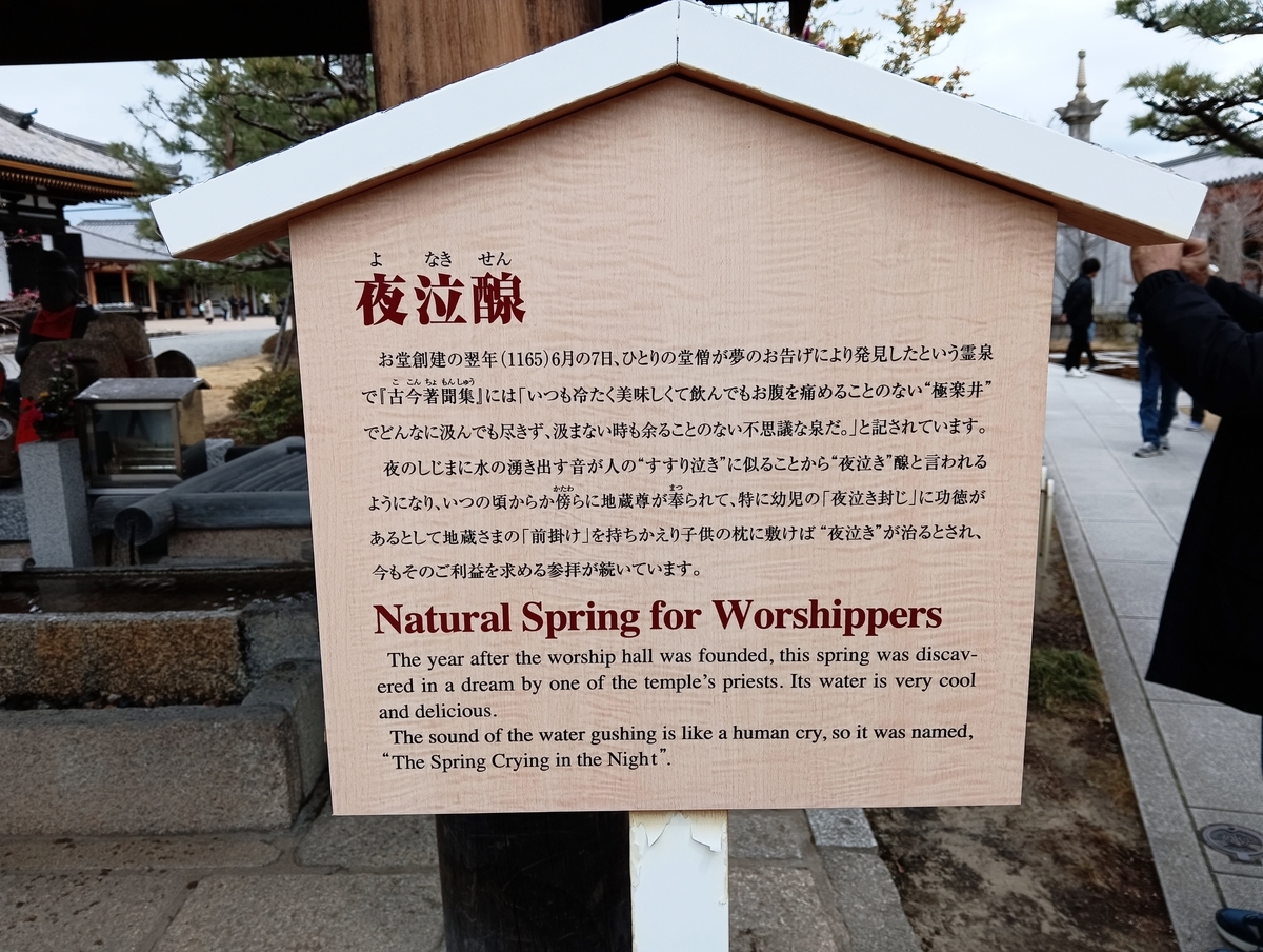 庭園の中に、「夜泣泉」と呼ばれる夜に啜り泣く様に水が流れる事から此の名が付いた井戸が有ります。