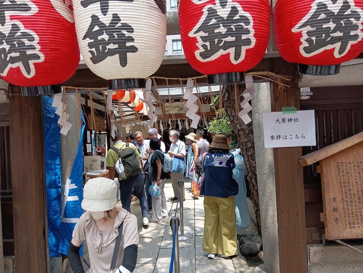 此方は綾傘鉾の地元保存会が、大野原神社の御霊を分霊した祠が有る辻でして、其の中で御札等販売授与して居り、綾傘鉾の飾り物も宵山まで一般公開されております。
